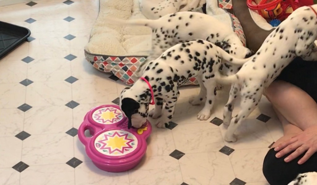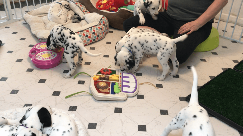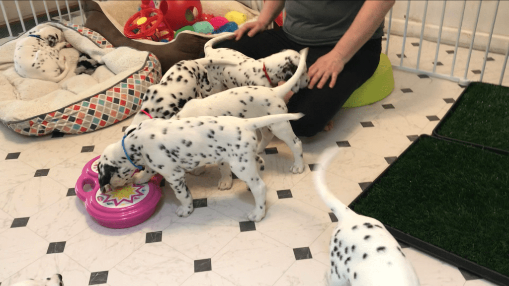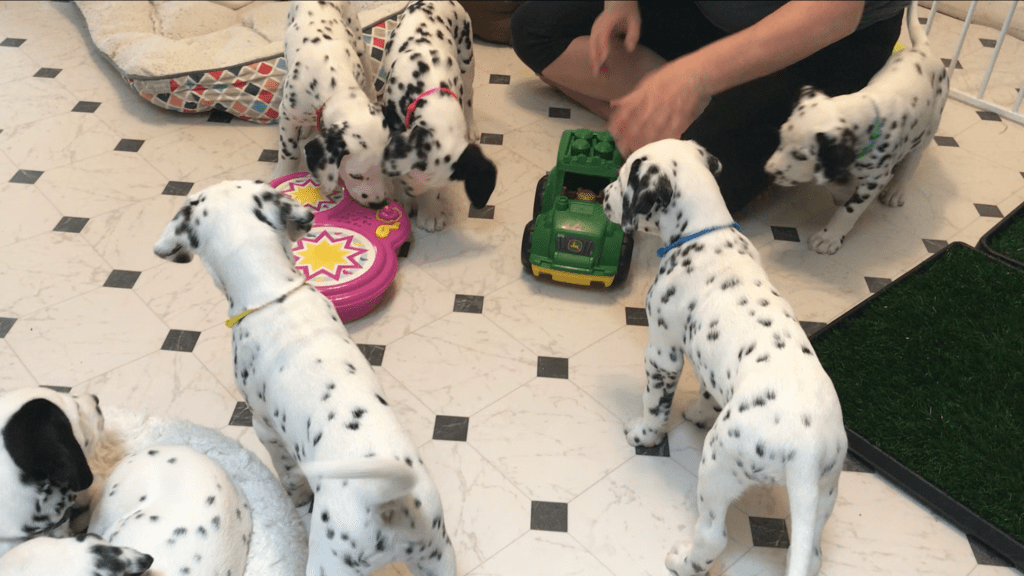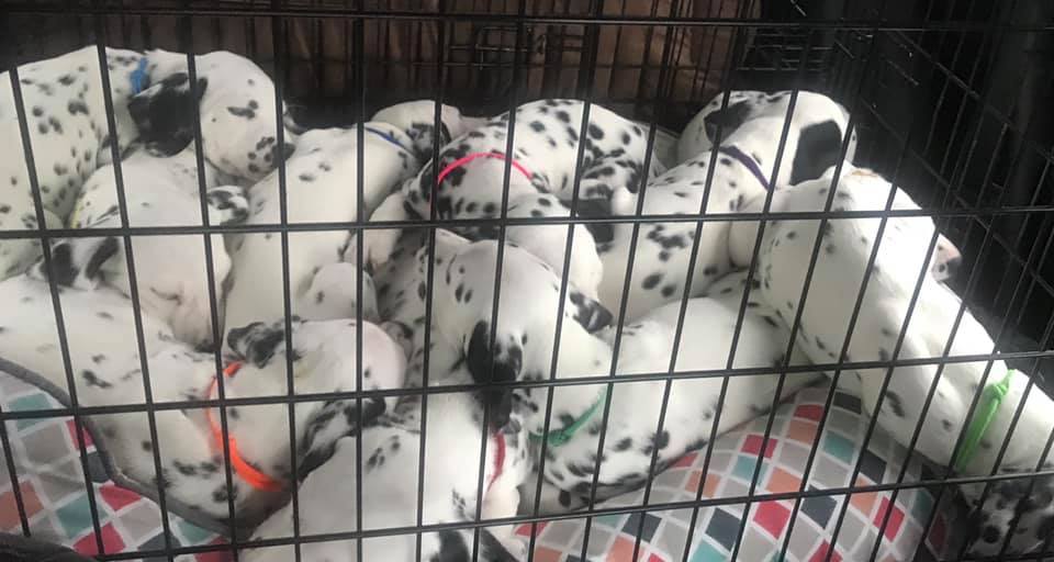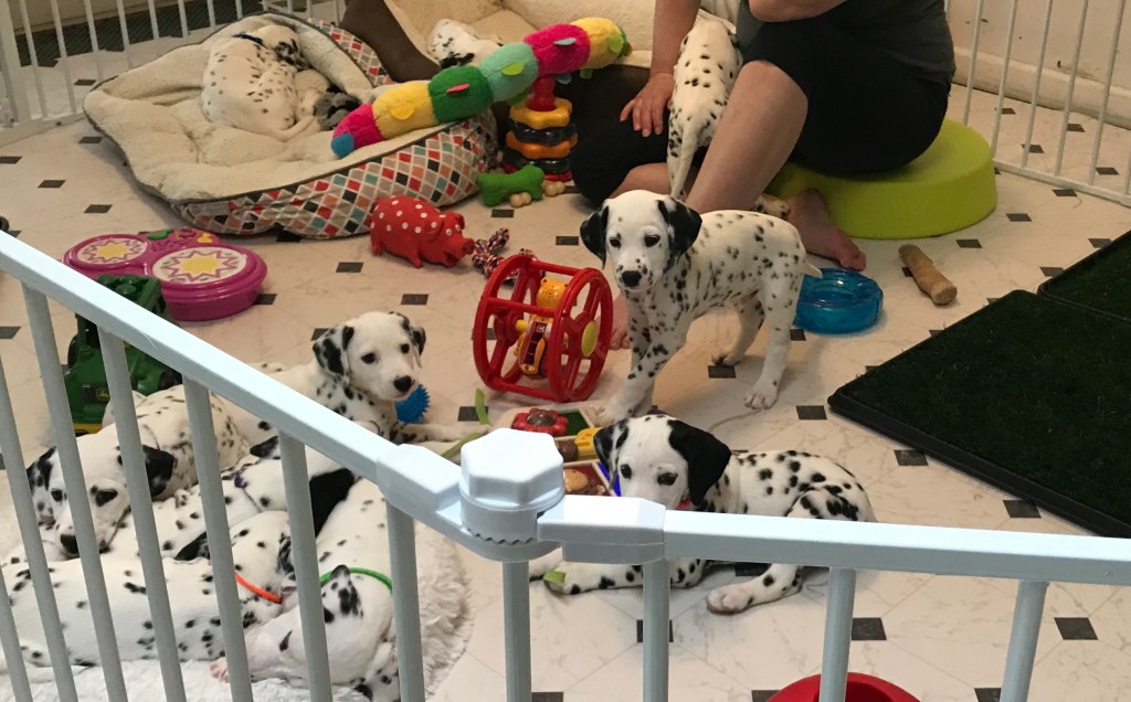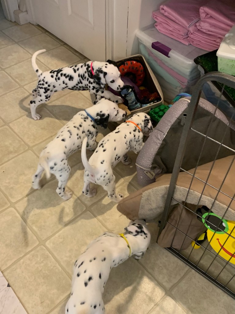 Long time friend and mentor, Barb Allison of Rim Rock Dalmatians, came to evaluate the puppies today. Some of you may know the story of how we got our first show dog, Brady, who was originally bought as a pet and then turned into a show dog because many of the Greater Pittsburgh Dalmatian Club members said that he needed to be shown. Cut to almost six years later, and here we are with 10 puppies! So anyways, when Barb was here, she confirmed what I was already thinking, which is that we have two pups that we would like to be shown. Taurus and Wesson are the two show prospects. Although there are some others that can be shown too, we are ok with them being pets as we believe that there really isn’t a need to have the same pedigree out there so many times.